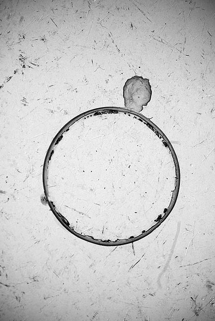 Devo dire che il tuo colpo d'occhio e l'associazione al virus e alla sua struttura ci sta tutta.. buona la scelta della ripresa perfettamente in asse con il piano d'appoggio, e la resa del b/n.. tutte quelle striature e segni sul tavolo danno l'idea di altri esseri microscopici presenti insieme al più grande virus..