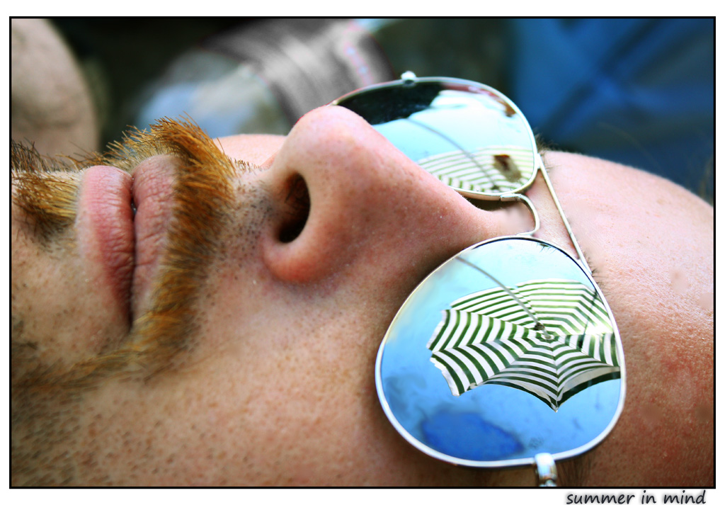 foto estiva, mi piaceva il riflesso dell'ombrellone sull'occhiale che ti fa pensare al relax quando sei sulla spiaggia