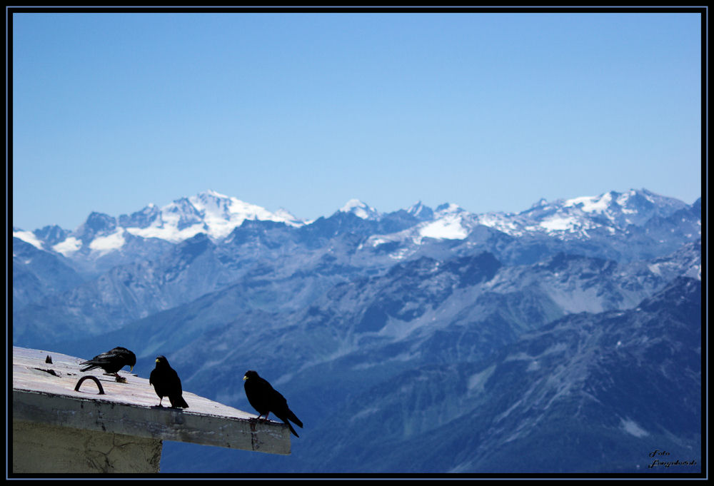 Questi nn sono corvi ma gracchi alpini ..i corvi hanno il becco nero e sono piu grossi Ok! Ok! Ok!