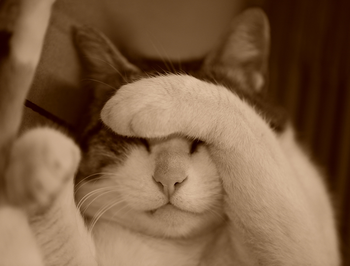 Un gatto non si ripara gli occhi dalla luce con una zampetta ... se necessario li chiude ma ha la possibilità di "diaframmare" su una scala veramente ampia, per cui è in gado di muoversi sia nel buio quasi assoluto che in condizioni di luce estrema.