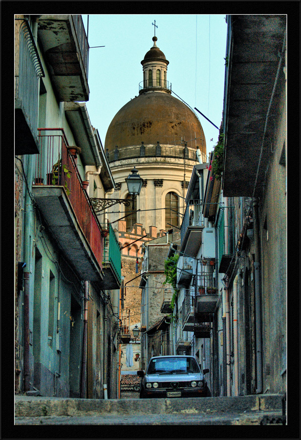 Strade di Randazzo. Chiesa S.Maria sullo sfondo.