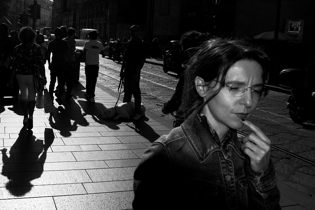 Non male... il gioco delle ombre, le silhouettes, la ragazza che sembra dire "però, ho perso un'occasione!" ... però, credo per avere le silhouettes, il volto della ragazza non mi pare naturale, chiazze di luce e un incarnato troppo scuro; forse lavorando il viso in pp su un altro livello potevi avere un incarnato diverso