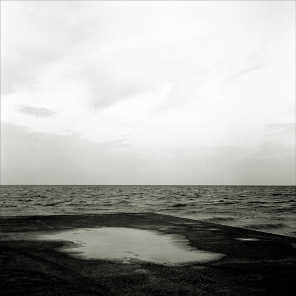 il grigio della pozza così simile a quello del mare la fa apparire quasi come un buco nel pontile...