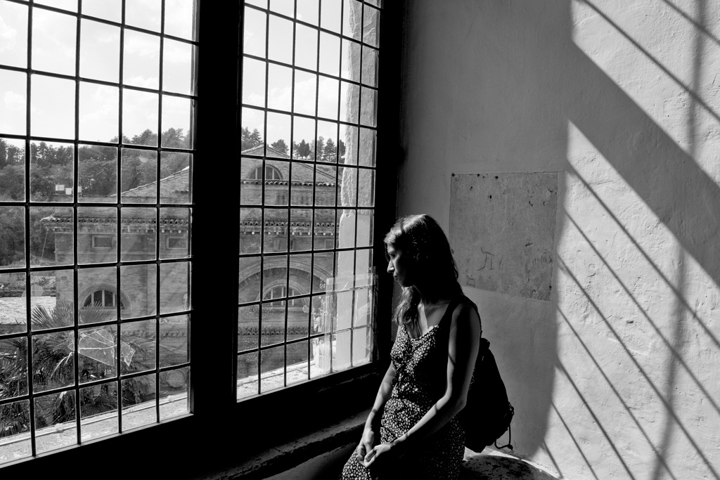 Volendo variare il punto di ripresa si poteva sfruttare la scena con una ripresa radente il finestrone che comprendesse sia l'espressività del soggetto che il gioco delle ombre.