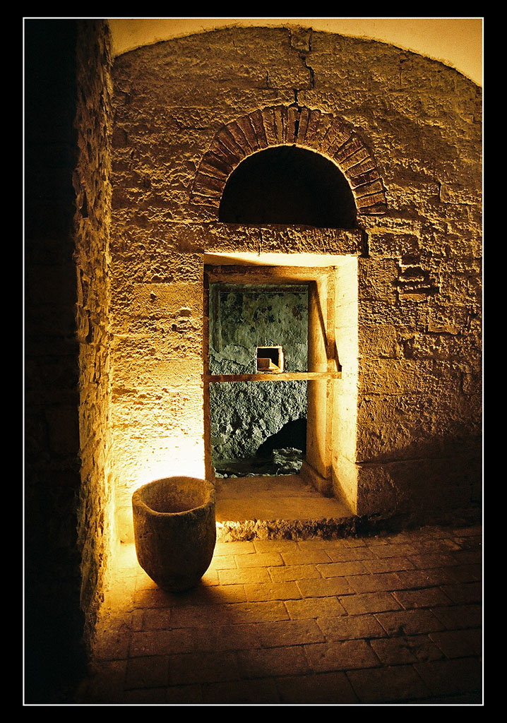 Hai trovato un'ottima inqudratura per tenere nella stessa scena la forte luce presente e il buio che tutto intorno avvolge la scena, come in basso a destra e lungo il profilo del muro, ben presente a sinistra in maniera non affatto eccessiva.. bello il nero assoluto nel volume sopra alla porta..