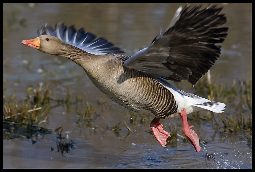 | Oca selvatica in fase di decollo. Centro cicogne e anatidi LIPU - Racconigi (CN) |