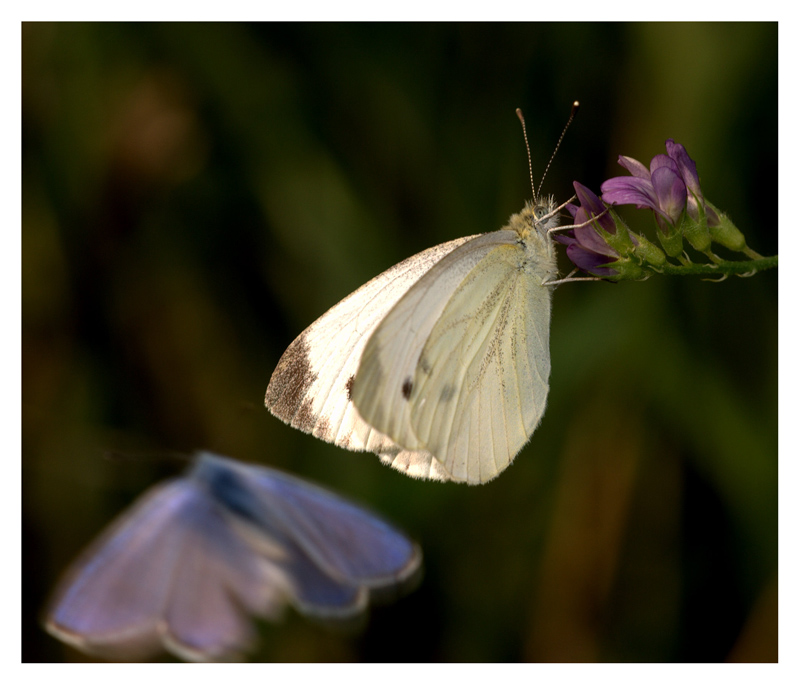 Concordo con pigi47 su quanto ha scritto. Trovo inoltre che la licenide azzurra sia troppo vicina al bordo, mentre nella farfalla bianca la luce diretta è troppo alta.