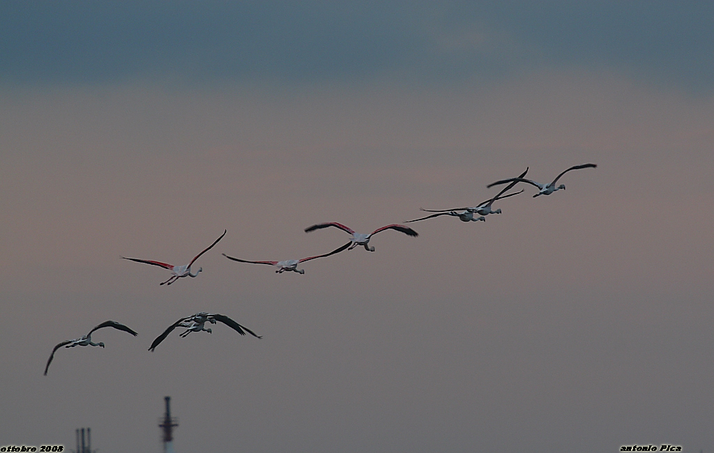 Invece i fenicotteri, da soli nel cielo, li vedo bene a colori.