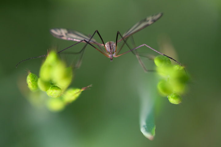 Curiosa questa posizione a zampe divaricate che l'insetto assume a cavallo dei due fiori.