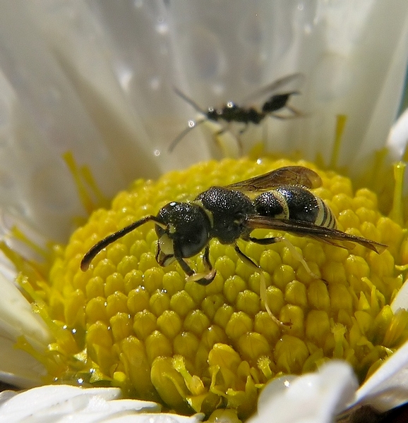 Cerco di indovinare sul taglio che hai fatto : direi ai lati, e così hai perso un pò di petali che forse erano chiari ? A me piace così anche se la trovo leggermente sacrificata come composizione. Bella cattura per i due insetti.