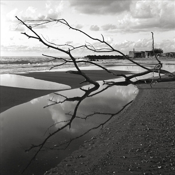 Bella composizione, il ramo sembra voler giocare con le pozze d'acqua, mi piace molto.
