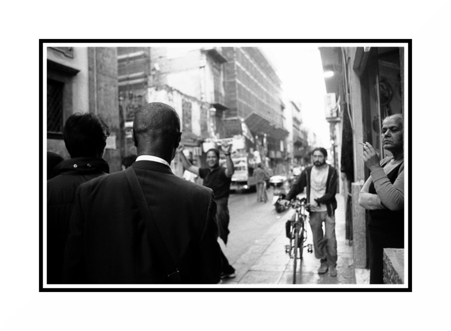 Una digitale non full frame avrebbe dato una maggiore pdc, ma avrei anche fatto risaltare i passanti di fronte dici che sarebbe stato meglio? Poi alla mia dx c'era un muro, la donna era sulla soglia di un negozio, inquadrando più a sx l'avrei tagliata.