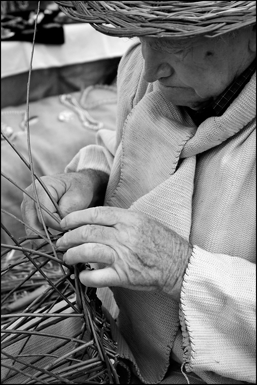 Merita di essere osservata con calma, per gustarsi il tempo lieve e quasi rallentato con cui questo signore esegue un gesto che sa d'antico, di ricordi e tradizioni che trasudano fra i rametti e fanno parte di un unico insieme con il personaggio che li compie.