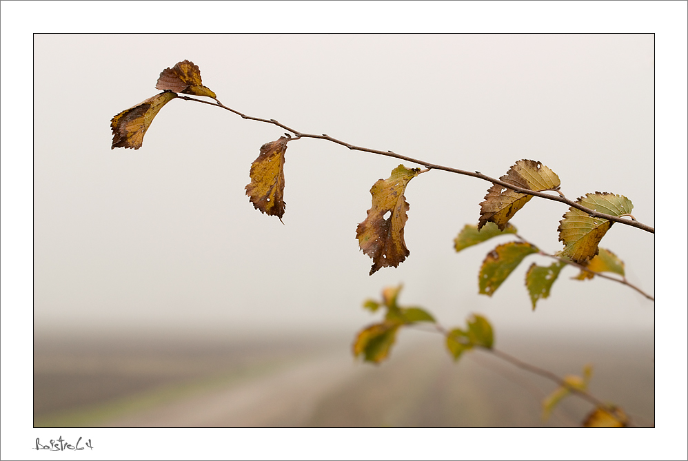 Senza i due rametti sfocati che si delineano in verde in secondo piano.... la foto sarebbe stata differente, probabilmente più algida e precisa, ma non si sarebbe respirata l'atmosfera sospesa, umida, di inverno alle porte, che anche l'accenno di sentiero in sfondo suggerisce.