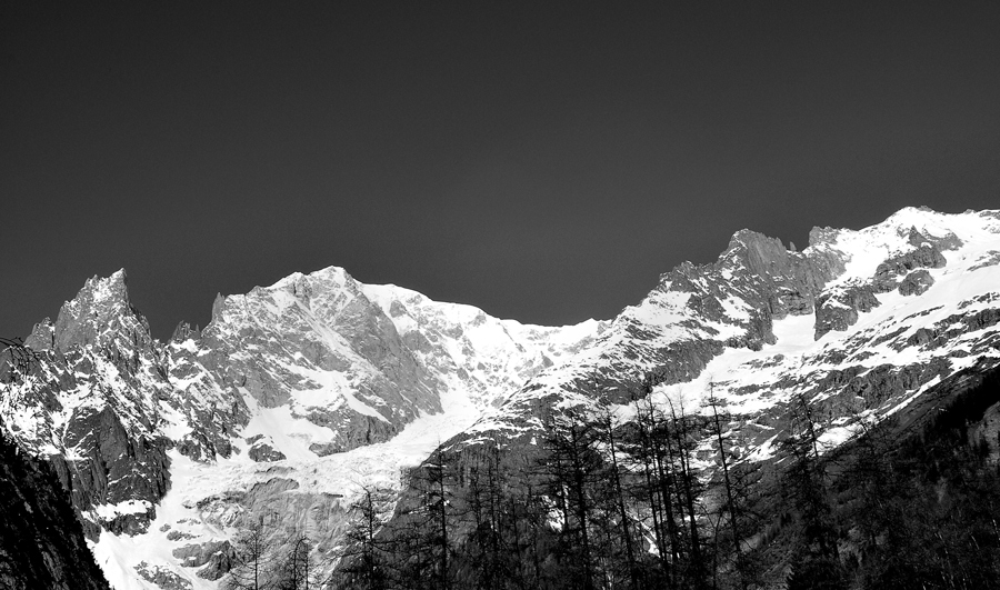 Bel B/N sulle cime più vicine. Mi pare manchi un po' di nitidezza in fondo al vallone centrale (o è colpa della compressione?). C'è un rametto che spunta da sinistra che mi sembra disturbi un po'.