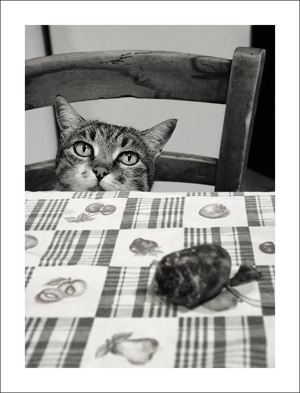 Troppo simpatica! Ottima la maf che dirige l'attenzione sull'espressione del gatto.