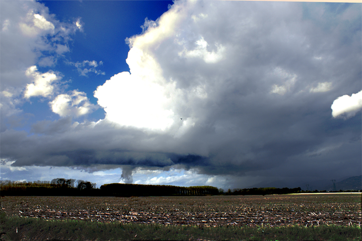 Molto caratteristica quella nuvola a forma di fungo atomico, ottimo colpo d'occhio, bellissimi i colori del cielo.