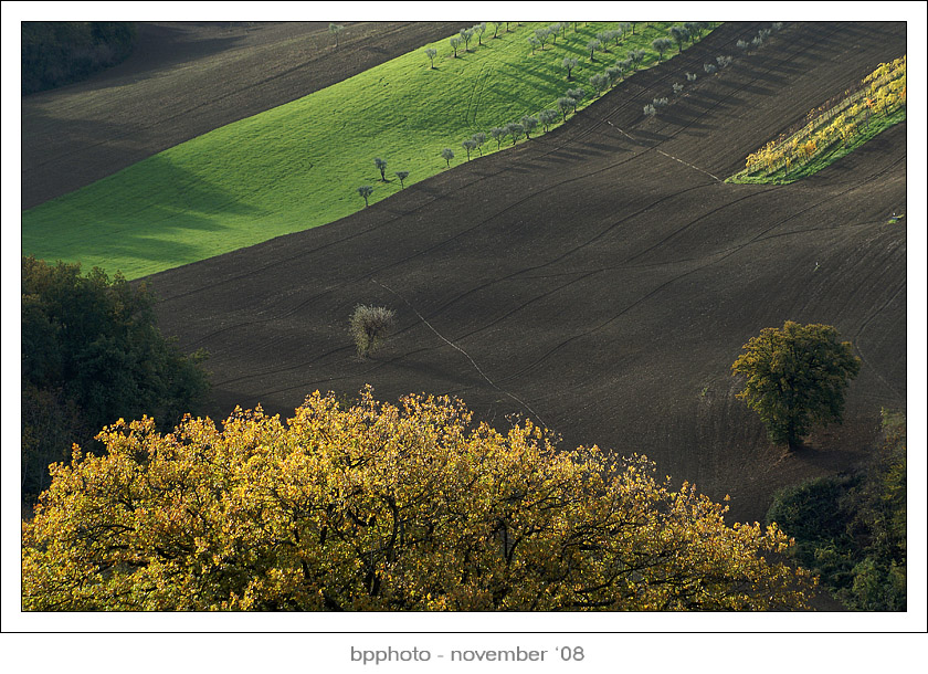 Bello l'andamento trasversale delle linee dei campi che dà dinamicità all'immagine.