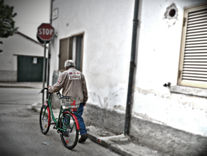 L'interazione cartello/ciclista potrebbe anche essere interessante ma lo sfocato aggiunto in post-produzione disturba troppo (almeno il sottoscritto), così come la finestra che spunta sulla destra.