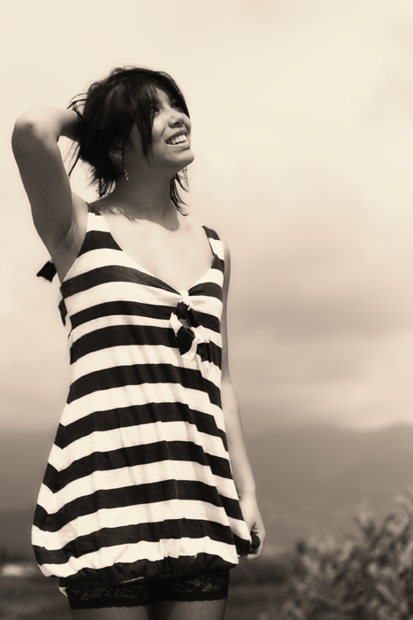 Bello vestito, modella e viraggio. Sarei curiosa di vederla con un'inquadratura un pò più ampia.