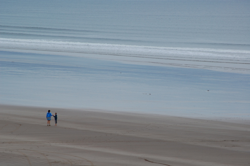 In biancoenero non ce la vedo troppo, diventa di un grigio uniforme e se la contrasto si perde quest'atmosfera vaga e tenue che a me suggeriva l'idea di infinito (unitamente ai due bimbi, una che scruta l'orizzonte invisibile all'osservatore e l'altro che si rifugia nella sua "grande" stretta di mano, volgendo le spalle all'oceano).