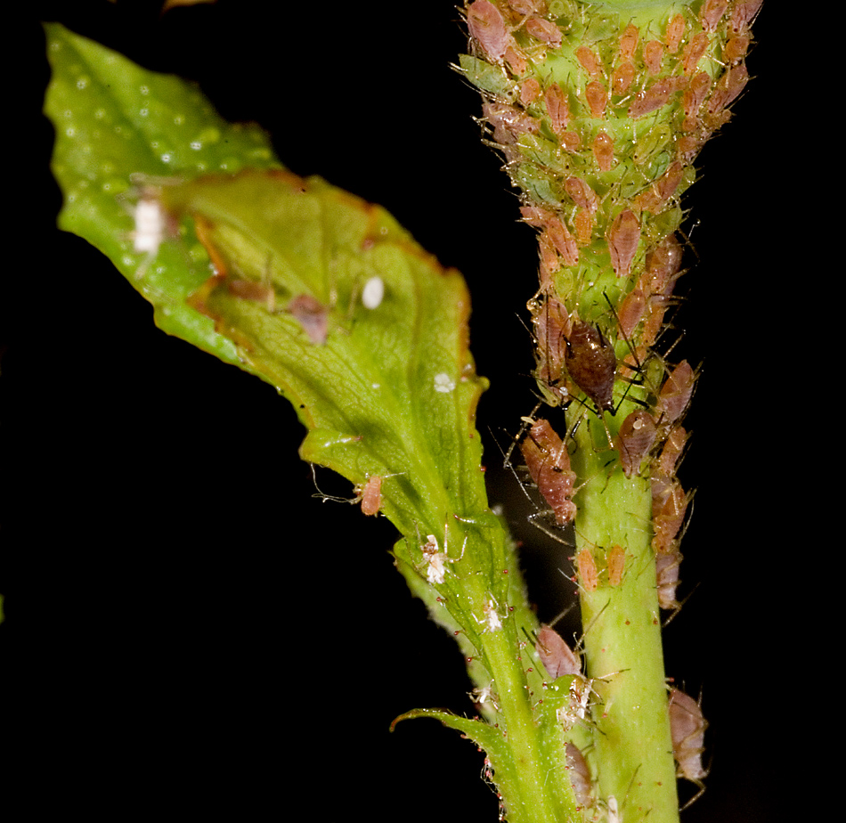 Bella macro in cui in effetti sarebbe stato meglio tagliare la foglia, con una maggiore concentrazione su questi micidiali piccoli distruttori nella parte centrale della pianta.