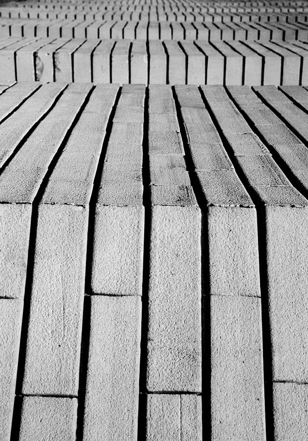 Secondo me, ma sottolineo che non sono un esperto di questo genere di immagini, in una foto come questa, le linee (ad esempio quelle nere in basso a sx e dx) dovrebbero avere un inizio equidistante dai bordi della foto, inoltre non ci dovrebbero essere zone di disturbo come quelle in alto a sx e dx. Non me ne volere, ma secondo me la forza di queste immagini è tutta nella precisione altrimenti questa è solo una foto di mattoni.