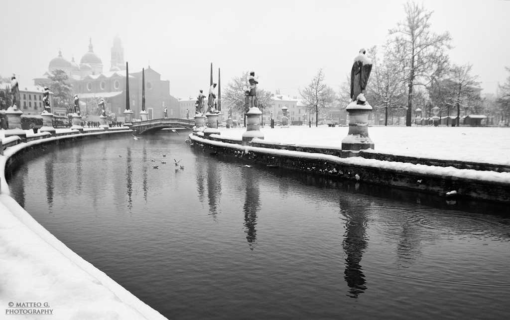 La neve, e l'acqua che per contrasto appare nera, danno un sapore tutto particolare a questa vista piuttosto classica. Secondo me però l'eccessiva vicinanza al margine sinistro impedisce all'occhio doi godere compiutamente l'armonia della curva del canale; salvo la presenza di elementi di disturbo, sarebbe stato penso preferibile puntare la macchina un po' più a sinistra, a costo di sacrificare qualcosina a destra. Bella, in ogni caso.