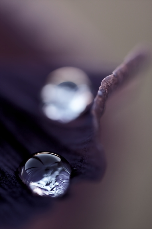 la parte a fuoco a cui ti riferisci sembra solo accanto alla goccia sfuocata, in realtà viene a trovarsi proprio sul piano di messa a fuoco.... in effetti l'uso del diaframma tutto aperto esalta molto le differenze fra i vari piani anche se le distanze sono molto piccole...