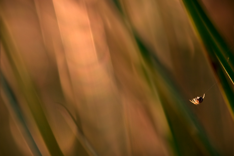 Lo sfondo è super magico, pennellate che scaldano l'osservatore, con il ragnetto che ne evidenzia la grandezza!