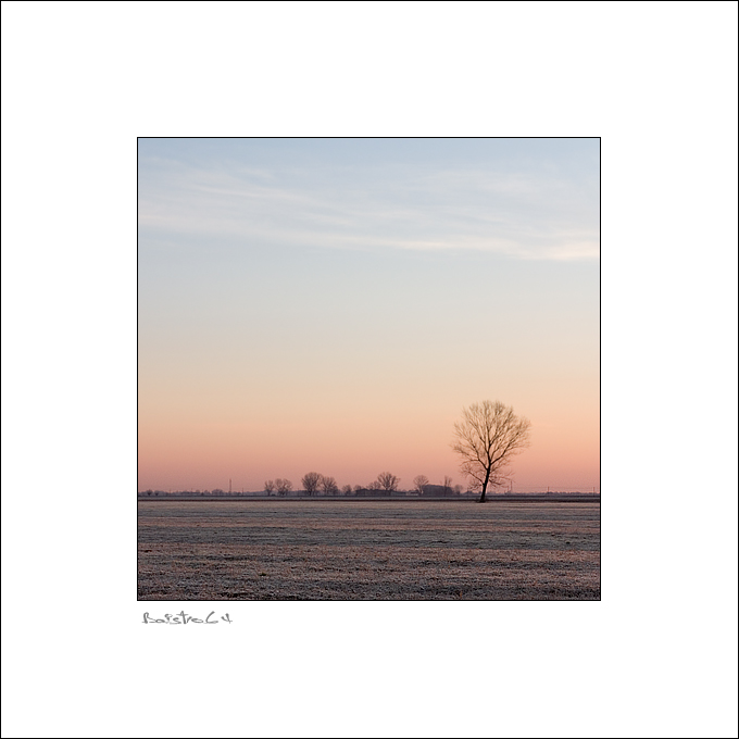 Questa immagine la ritengo costruita su un sottile gioco tra la staticità della pianura Padana, ed il dualismo, in un certo modo simmetrico ma opposto, delle masse e dei colori utilizzati per la composizione.