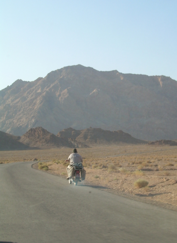 In realtà la foto è stata scattata con una compattina che non permetteva scelta di tempi ed è stata scattata dall'interno di un automobile attraverso il vetro anteriore. Poichè anche la messa a fuoco era forzatamente automatica, le condizioni erano un po' estreme. Però il soggetto mi pareva così bello che ho tentato comunque: quando ho visto la moto in lontananza ho tirato fuori la compattina e ho tentato un paio di scatti.