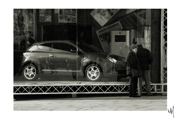 Personalmente sono più attratto dei passanti riflessi sulla vetrata proiettati sulla fiancata dell'auto: quasi un dualismo tra motore e piedi