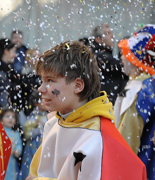 Un bel ritratto valorizzato dalla pioggia di coriandoli che aggiunge dinamicità alla scena. Lo sfondo disturba un po'. Il taglio di solito lo preferisco tradizionale, 4/3, 3/2 o quadrato, così è troppo evidente che si tratta di un ritaglio. Ciao