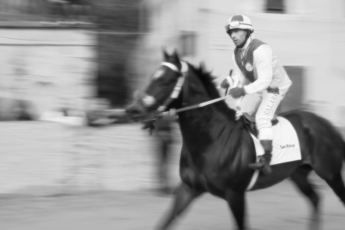 Grazie del commento d.kalle. è un panning...infatti parte del fantino è ferma (gamba e soprattutto la scritta San Rocco, il nome della contrada).