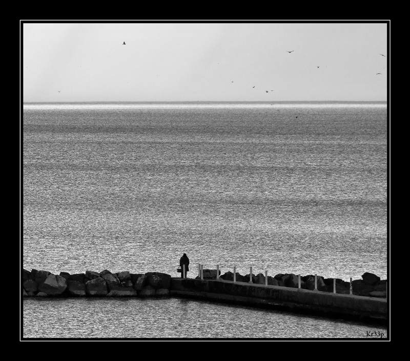 | Un po' malinconica, ma bella. Per me i gabbiani non aggiungono nulla alla bellezza della foto; anzi, senza di essi l'immagine sarebbe stata più pulita e più essenziale. Quello che più mi trattiene, affascinato e riflessivo, a questa scena, è questo mare imponente che si mostra con le sue acque omogeneamente increspate. Dal titolo che hai dato (che è brutto, ma proprio brutto) deduco che invece tu ne dai una interpretazione tutta incentrata sulla presenza dei volatili. A dimostrazione di come la stessa foto possa suscitare emozioni tanto diverse. Un saluto