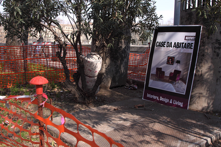 Ciao Lilian, secondo me la tua immagine evidenzia le contraddizioni della nostra società, il materasso lercio e la pubblicità di un giornale di design evidenziano il contrasto abissale della nostra realtà. Il pomello del picchetto mi disturba un pochino, sono portato a guardarlo di continuo, ma comunque rimane uno scatto di grande impatto. Ciao e complimenti.
