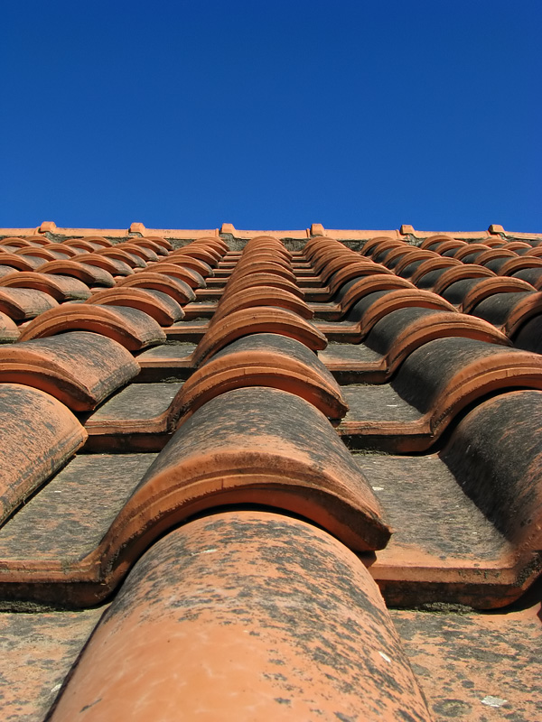 Forse un volatile nel cielo avrebbe completato il fotogramma, ma non rientrava nel progetto, cioè la fuga delle tegole in contrasto con il cielo terso che occupa un terzo.