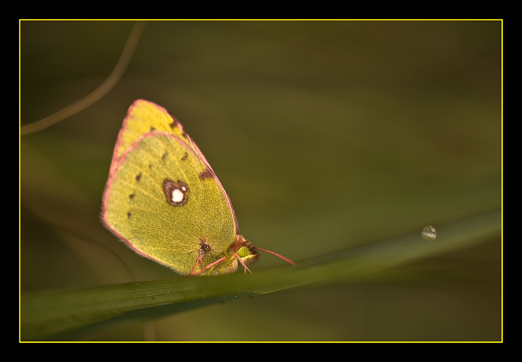 buoni i colori e lo sfondo, il soggetto pero' necessitava di una maggiore pdc, anche se le condizione sicuramente nn giovavano a favore, inoltre vi è un'eccesiva aria a destra, potevi inoltre clonare quel ramoscello in alto a sx e la goccioina a destra.