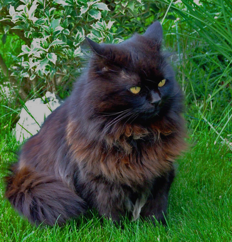Lussy è tutta nera a parte la babaglia, ma quando gli faccio le foto risulta sempre la tonalità blu e rossiccia, sembra che il suo pelo assorba la luce. Non sò perchè!