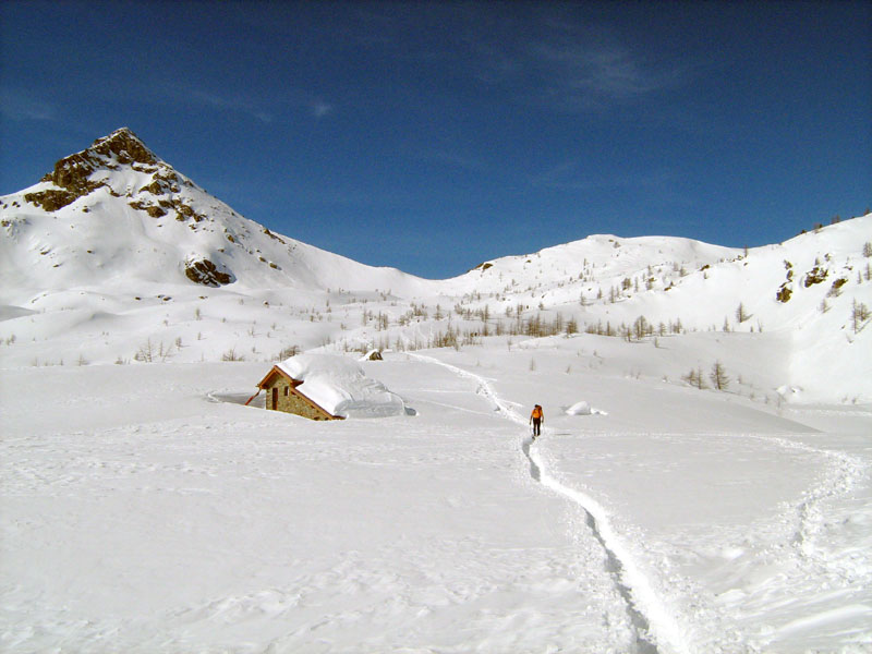 Avrei però spostato il punto di ripresa; avrei cioè provato a scattare a livello del solco sulla neve, avrei cioé cercato di rendere più evidente, perfino enfatizzandolo, il cammino dell'alpinista.