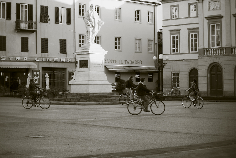 La componente archiettonica è molto spiccata e questo non è necessariamente un male in street, ma al contrario è un merito del fotografo se riesce a mescolarla con una storia che in quel contesto architettonico si svolge ... la storia in questo caso c'era, forse solo un po' troppa distanza ti separava dal girotondo delle bici .. solo qualche passo in più. La luce in alto sugli edifici non ti ha aiutato a produrre un BN pulitissimo.  |