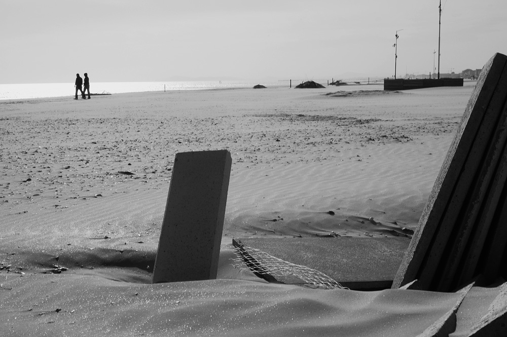 Forse a colori rende meglio: il grigio della sabbia è abbastanza simile a quello del cielo.