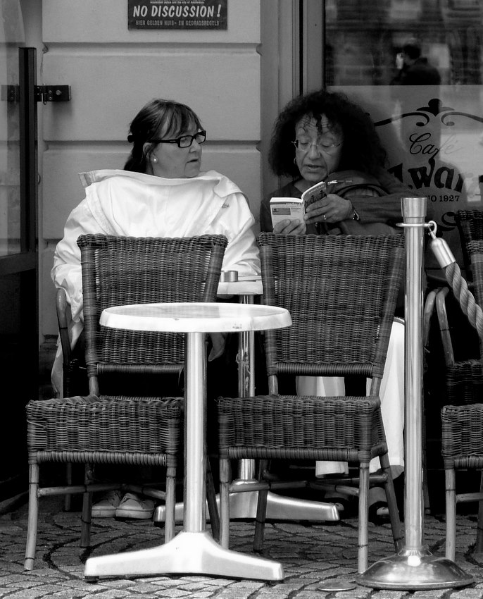 mi piace, ironica e pittoresca, bello il contrasto tra il cartello e le due signore