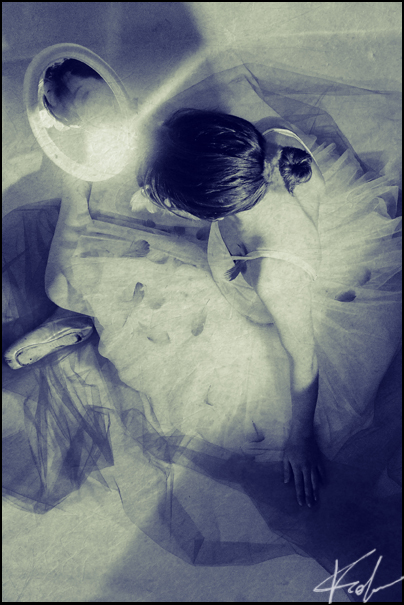 Devo dire che la regolazione cromatica mi trova molto d'accordo, così come quel lampo di luce che si accende vicino al viso.. proprio nel riflesso dello specchio, che diventa insieme al volto il protagonista dello scatto stesso.. come se il viso riuscisse a creare, in un qualche modo, una intensa fonte di luce..