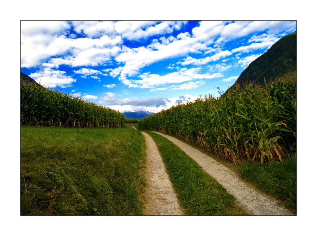 Ciao Antonino scatto molto bello però forse hai spinto troppo sul magenta che se noti ha cambiato il colore della montagna sullo sfondo e di qualche foglia di grano che spunta nel cielo Wink