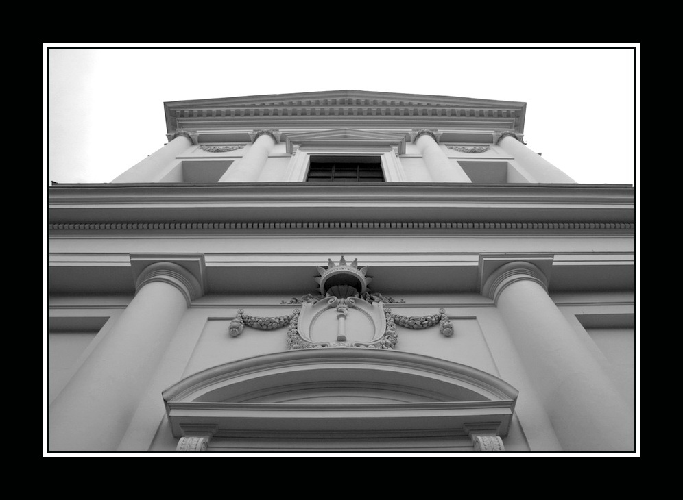 al di là di alcuni legerissimi scostamenti dalla verticale assoluta e dalla simmetria perfetta, l'immagine mi pare ben pensata e ben realizzata, perché sfrutta nell'inquadratura lo sviluppo in altezza della facciata di questa architettura..