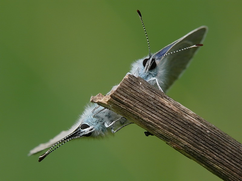 Questa immagine è molto bella e particolare per la posa insolita con cui sono state riprese le due licenidi.