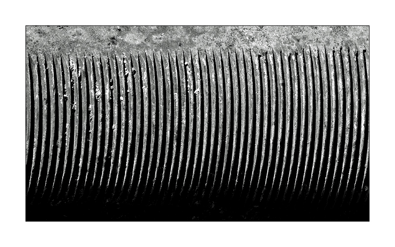 Dopo le delicate immagini dei giorni scorsi, sempre ottimi esempi ci compostezza ed equilibrio, ora proponi una immagine dal piglio opposto. Ossessiva nella ripetizione, ruvida e dura ma anche bella e ben fatta.