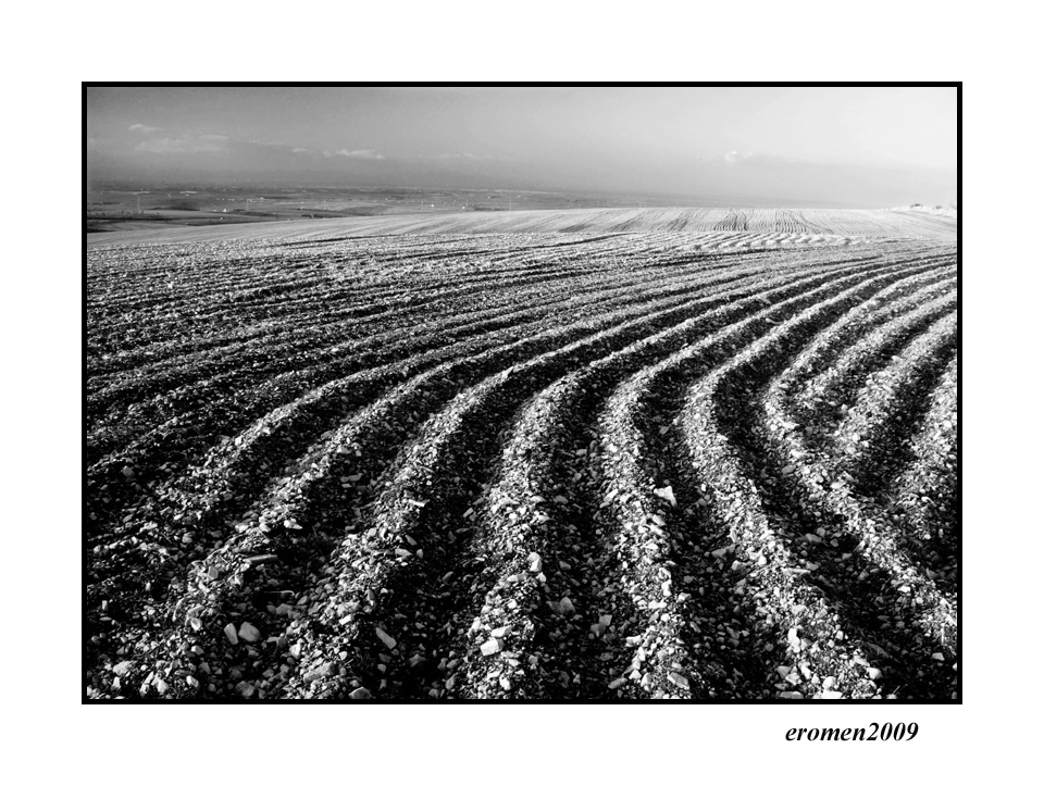 Bello l'andamento dei solchi e il b/n..., in effetti la parte superiore sembra quasi un po di troppo..., non so! Comunque interessante nel complesso. Ciao.